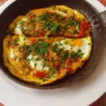 I grew up eating a simple, spiced egg dish that always felt like home — an Afghani-style omelette made with onions, tomatoes, bell pepper and warm spices. It’s not fussy, but it’s full of character: bright coriander, roasted cumin and a touch of paprika lift plain eggs into something savory and satisfying. This is a one-pan recipe that’s perfect when you want a fast, budget-friendly meal without sacrificing flavor.