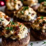 Delightful bite-sized stuffed mushrooms filled with creamy cheese and herbs, perfect for holiday gatherings.