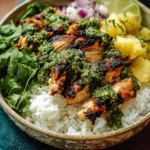 Making this Cilantro Chicken and Rice Bowl is a straightforward endeavor. In just a few steps, you can have a flavorful meal on the table. First, you’ll sauté the chicken with seasonings until golden and cooked through. Then, you stir in a vibrant mix of cilantro and lime juice, giving the dish its fresh flair. Finally, serve this savory mixture over a bed of steaming rice, and you’re ready to dig in!