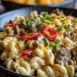 I grew up on cheesy pasta and crave a hearty, protein-forward dinner on busy weeknights — this Easy High-Protein Creamy Philly Cheesesteak Mac and Cheese hits both notes. It combines browned lean ground beef, soft sautéed peppers and onions, and a creamy mix of light cream cheese and mozzarella folded into whole-wheat or chickpea macaroni. It’s comfort food with a protein boost, perfect when you want something filling without fuss. If you’re curious how this ground-beef spin compares to other takes on the sandwich, check my roundup of ground beef Philly cheesesteaks for more inspiration.