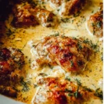 Juicy chicken thighs enveloped in a rich, creamy garlic sauce, perfect for an impressive meal or a comforting weeknight dinner.