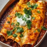 - Fill each tortilla with the beef mixture, roll them up, and place seam side down in the dish.