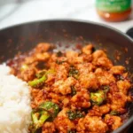 Making Firecracker Ground Chicken is straightforward. You’ll start by whisking together the tasty sauce that gives the dish its name. Then you’ll sauté the onions, cook the ground chicken until browned, and mix in broccoli and spices. The last touch is adding the sauce for that incredible flavor explosion.