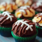 Bite-sized chocolate cupcakes decorated to look like little footballs, perfect for game day celebrations.