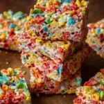 I’ve made Fruity Pebbles Rice Krispie Treats for birthdays, school bake sales, and lazy weekend snacks — they’re an instant crowd-pleaser. Bright, chewy, and nostalgic, these bars combine the classic marshmallow-and-butter base with two cereals for extra crunch and color. They come together in minutes, require no baking, and are perfect when you want something playful that both kids and adults will reach for. If you like seasonal twists, you can compare this to other festive riff-offs like Christmas Rice Crispy Treats for the holidays.