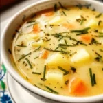 This soup is fast, forgiving, and crowd-pleasing. Four main pantry items — potatoes, onion, broth, and a little dairy — create a creamy texture and deep, savory flavor with minimal fuss. It’s perfect for weeknights, lunchboxes, or when you’re nursing a cold. Because the base is simple, it’s also great for picky eaters and easy to adapt (dairy-free, chunky vs. smooth, or loaded with toppings). A light finish of chives or parsley gives it a fresh lift that makes the bowl feel homey but not heavy.