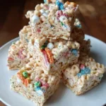 I grew up with plain Rice Krispies treats, but these Loaded Rice Krispies Treats take that nostalgic snack and turn it into something addictive: chocolate chips, extra mini marshmallows, peanut butter, and rainbow sprinkles folded into the classic marshmallow-and-cereal base. They’re the kind of thing you make when you want something fast, crowd-pleasing, and a little bit showy — perfect for bake sales, kids’ parties, after-school snacks, or a last-minute dessert at a potluck. If you like festive spins on childhood classics, you might also enjoy this holiday twist on the original recipe, especially around family gatherings: Christmas Rice Crispy Treats.