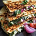You’ll mix the cheeses and veggies, portion that filling onto tortillas, fold, and toast until golden. No complicated techniques: just measured assembly followed by a short pan fry. The key moments are ensuring the veggies are not overly wet (so the tortilla crisps) and keeping the heat moderate so cheese melts without burning the tortilla.