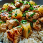 Delicious pineapple chicken served with rice for a flavorful meal.