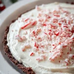 A no-bake peppermint pie combining cream cheese and peppermint flavors, perfect for holiday gatherings.