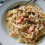 A delicious fusion of traditional carbonara with the rich, smoky flavor of salmon, this quick dish is perfect for weeknight dinners or fancy brunches.