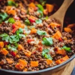 I remember the first time I tossed sweet potatoes into a sizzling skillet of seasoned ground beef — the kitchen filled with a warm, smoky scent and the whole family hovered over the stove. This Southwest Ground Beef and Sweet Potato Skillet is that kind of dinner: rustic, bright, and forgiving. It’s an all-in-one meal that balances hearty protein with naturally sweet, tender potatoes and a kick of chili spice. Perfect for weeknights when you want something nourishing but uncomplicated, and great for meal-prep lunches the next day. If you like simple sweet-potato bowls, you might also enjoy my take on a sweet potato rice bowl for a lighter variation.
