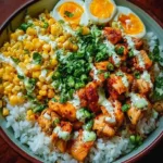 Street Corn Chicken Rice Bowl is the kind of bowl I make when I want big, bright flavors without fuss. Juicy, lime-kissed chicken sits on a fluffy bed of rice, topped with slightly charred street-style corn, salty Cotija, and a tangy, creamy lime sauce — all the best parts of elote simplified into a weeknight-friendly meal. If you like bold, Tex–Mex–influenced bowls, this one delivers. For a similar grain-bowl riff with cilantro-forward flavors, see this Street Corn Chicken Rice Bowl that inspired some of my tweaks.