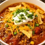 Taco soup is a cozy, one-pot dish that brings the vibrant flavors of Mexican cuisine right to your kitchen. It’s one of those meals that not only satisfies but also warms the soul, making it a favorite during chilly evenings or busy weeknights. I remember the first time I made taco soup; it was during a family gathering, and everyone loved how easy it was to prepare and how delicious it tasted. The beauty of this recipe lies in its simplicity and versatility—perfect for a family dinner, game day, or when you just want something hearty without spending hours in the kitchen.