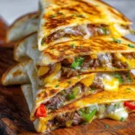 If you’re craving something that combines the satisfying flavors of a classic Philly cheesesteak with the ease of a quesadilla, you’re in for a treat with these Weeknight Philly Cheesesteak Quesadillas. I stumbled upon this recipe during a busy weeknight when I wanted comfort food without spending hours in the kitchen. It quickly became a favorite because it’s not only delicious but also straightforward to prepare. Perfectly melted provolone, savory beef, and vibrant veggies are all packed between crispy tortillas, making for a quick dinner that’s sure to please everyone at the table.